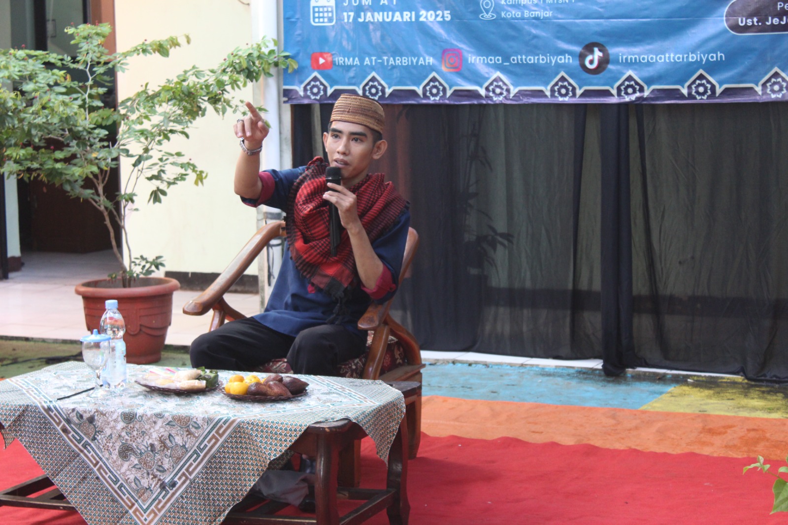 Ustadz menyampaikan kisah perjalanan Nabi Muhammad SAW dari Masjidil Haram ke Masjidil Aqsa hingga ke Sidratul Muntaha. Siswa dan siswi diajarkan pentingnya shalat lima waktu dan nilai-nilai ketaatan kepada Allah. Tausiah disampaikan dengan bahasa sederhana, sehingga mudah dipahami.